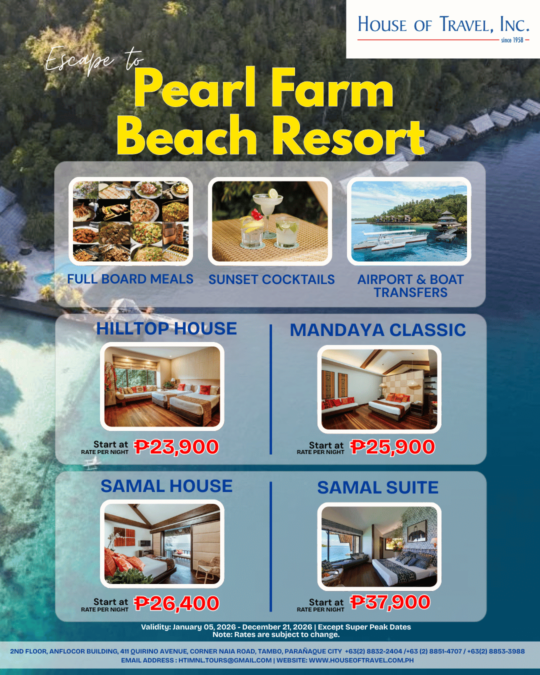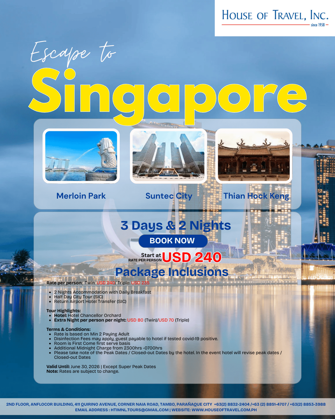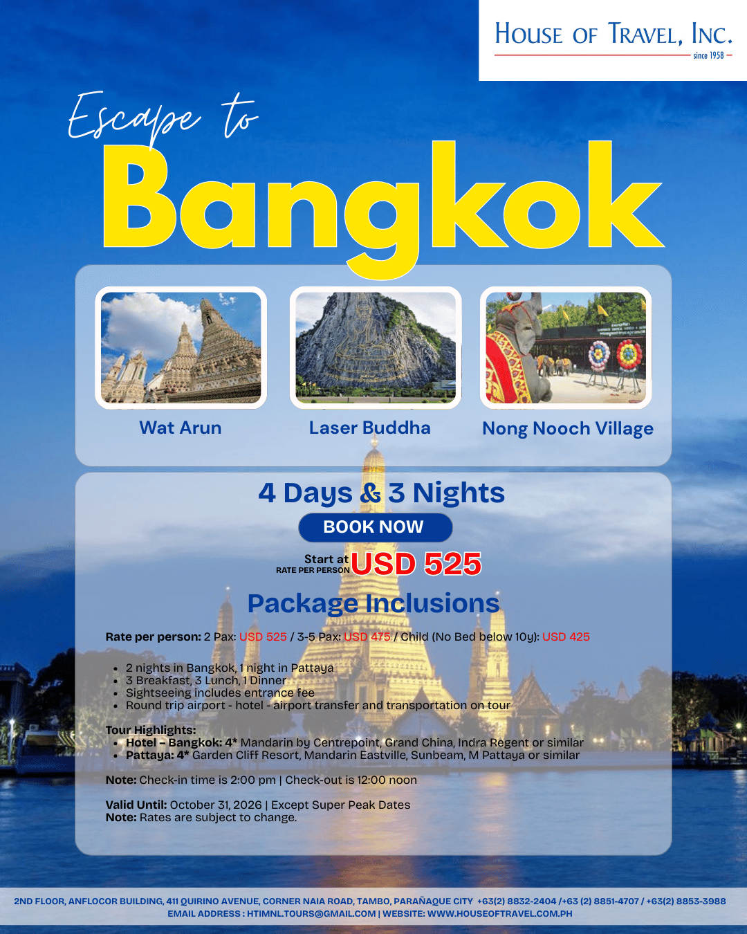 Extra Night per person per night: USD 80 (Twin)/USD 70 (Triple)